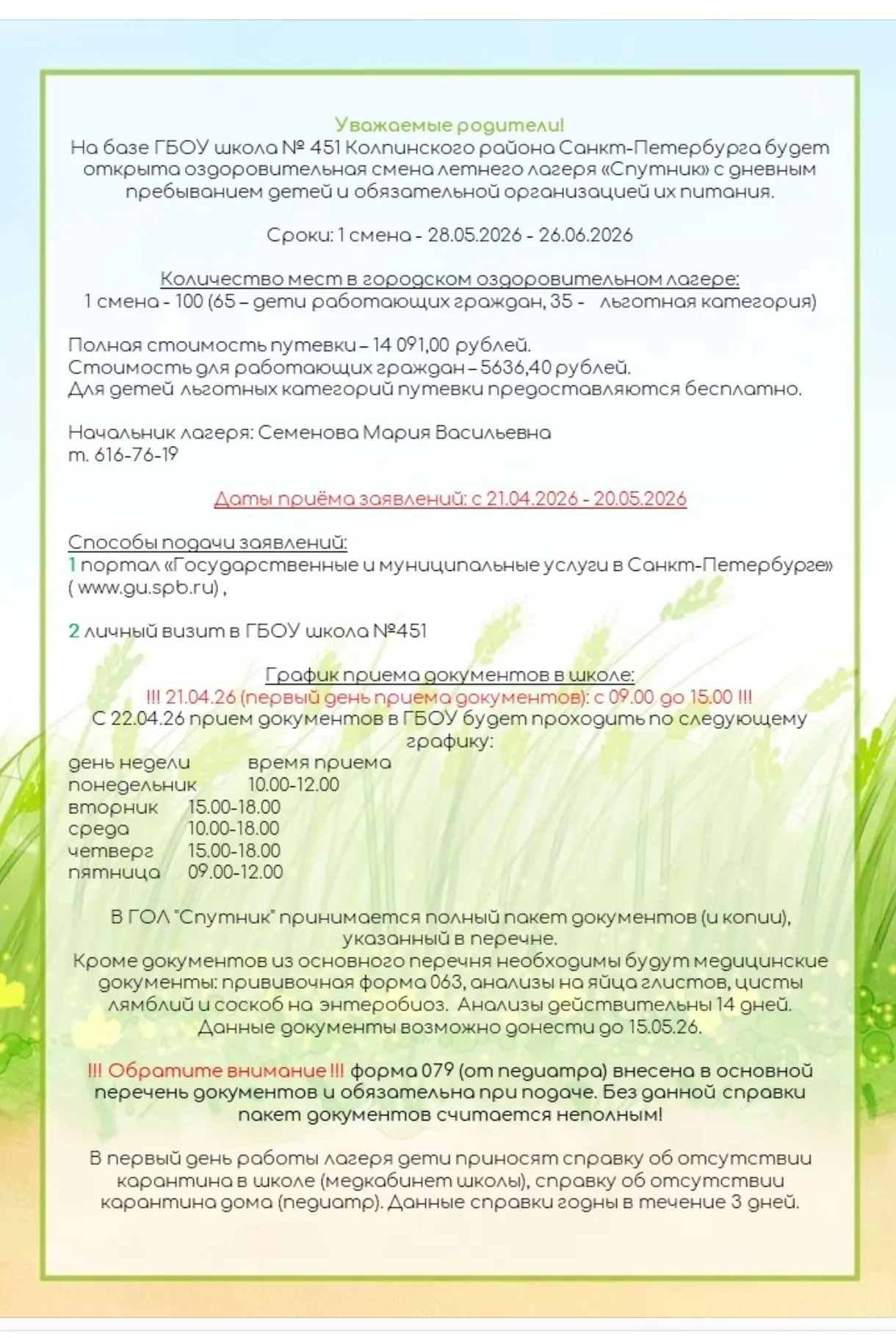 Уважаемые родители (законные представители)!